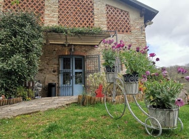 Nel cuore verde del Parco del Curone e Montevecchia, immersi tra vigneti e campi fioriti.
